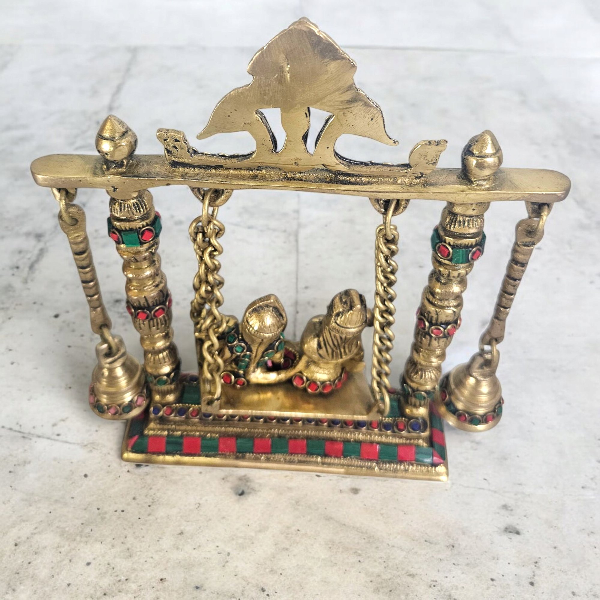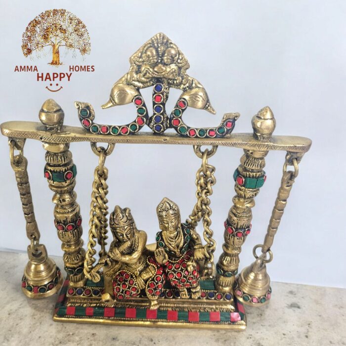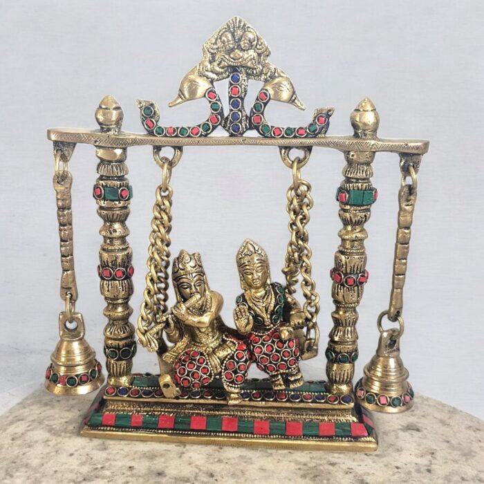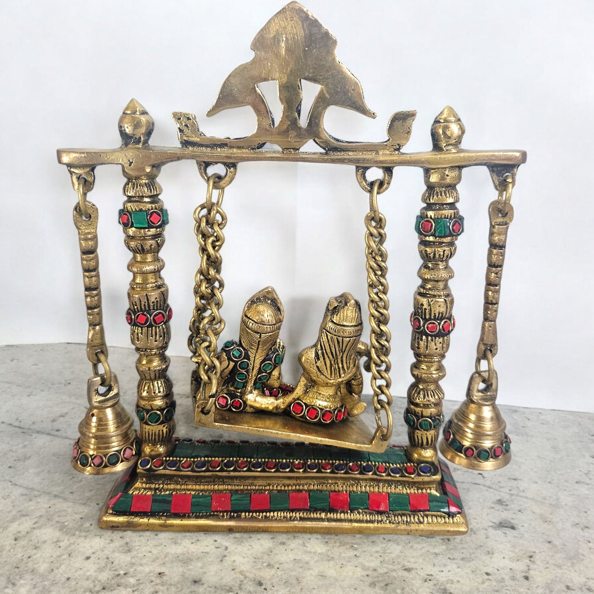 Brass Radha Krishna on Jhula Swing With Bells 10 Inch